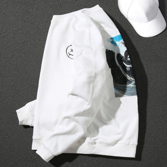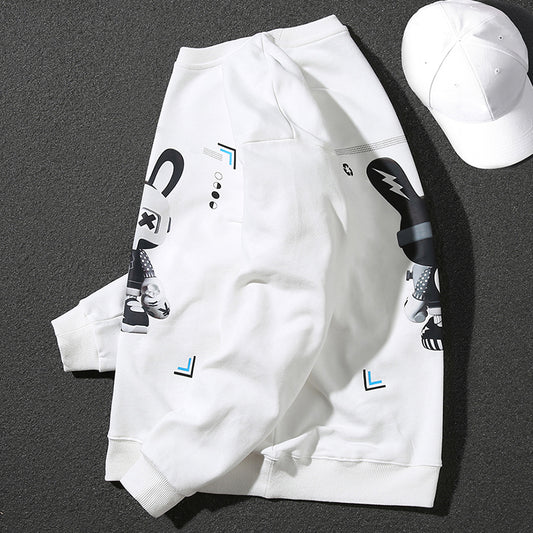 Handsome Japanese sweatshirt men's autumn and winter trendy new round neck pullover long-sleeved printed loose casual versatile top