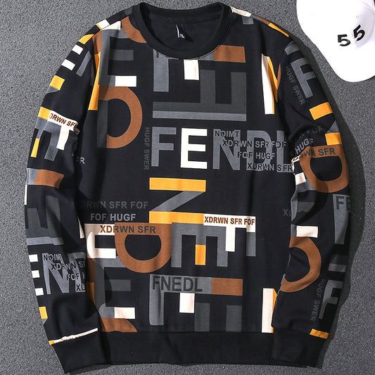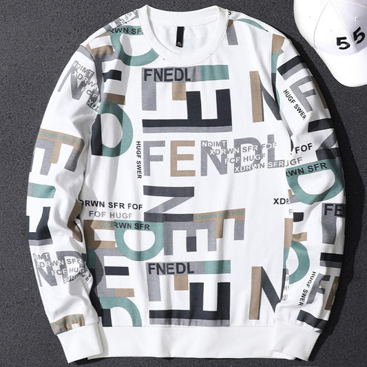 Handsome Spring and Autumn English Printed Sweater Men's Trendy Brand Korean Style Casual Personalized Pullover Bottoming Shirt Long Sleeve Top for Men
