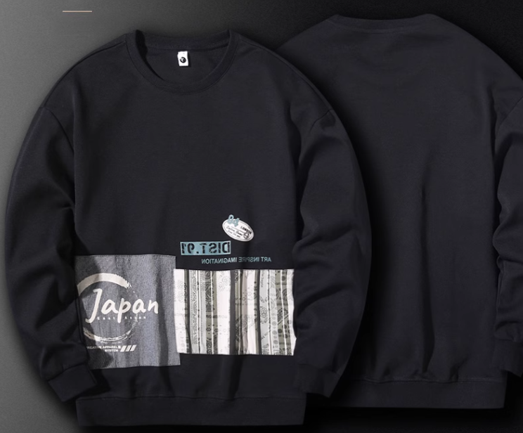 Handsome Japanese sweatshirt men's autumn and winter trendy new round neck pullover long-sleeved printed loose casual versatile top
